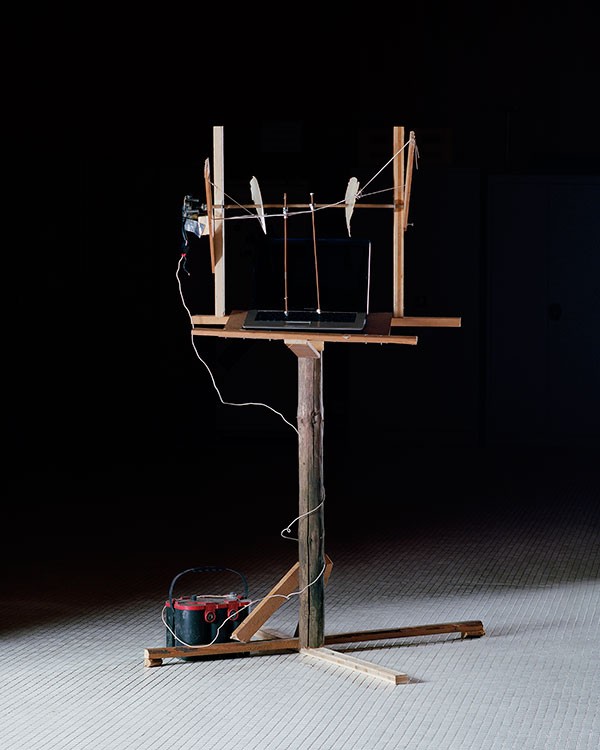 Elles se rendent pas compte est une série de photographies qui présente de manière frontale des sculptures cinétiques motorisées.