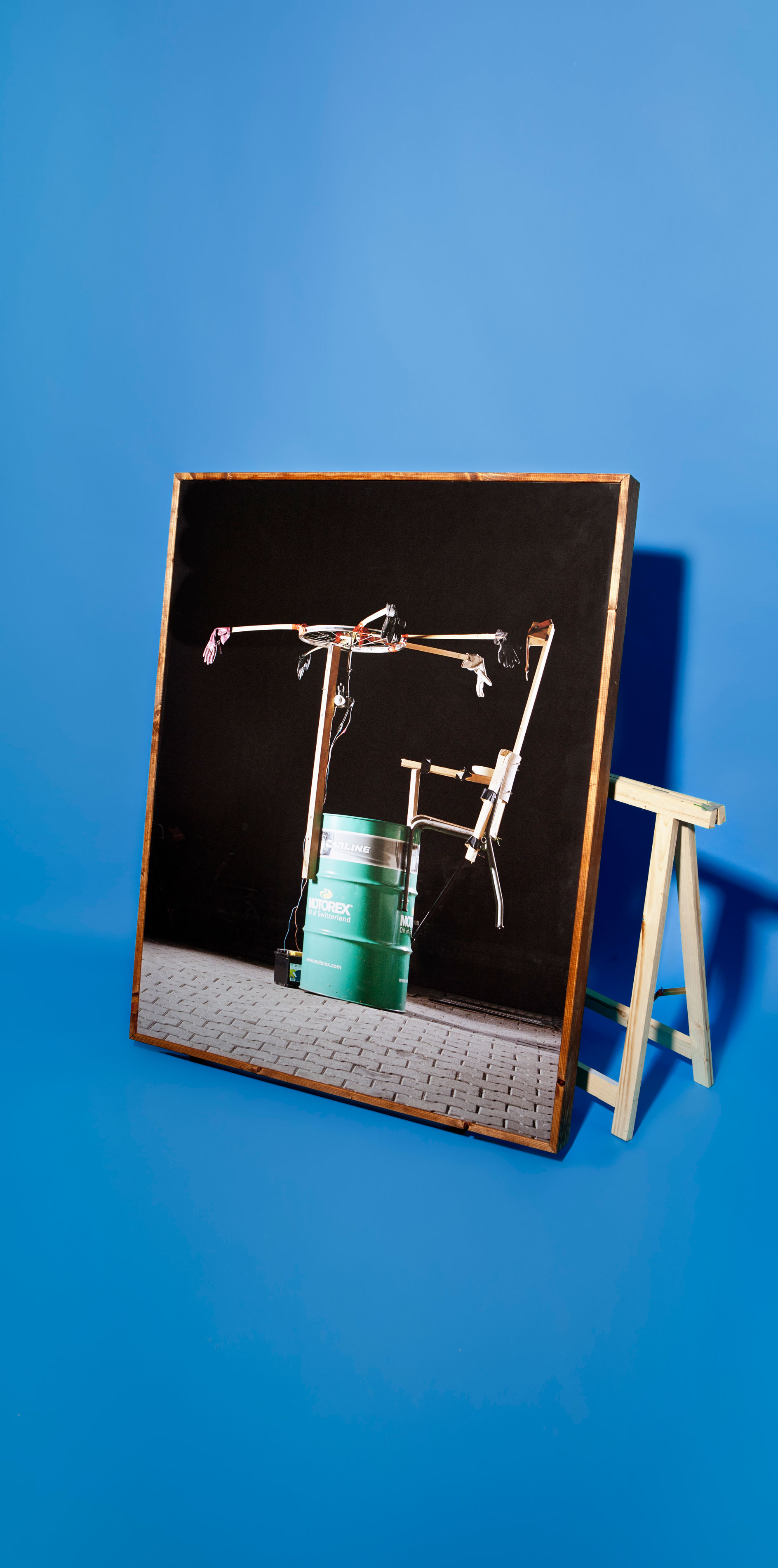 Les sculptures présentées sous forme de tirage photographique ont toutes été créées puis détruites par le photographe. Inversément, les machines parfois installées au sol en tant qu’oeuvres plastiques ne sont pas (encore) disponibles en photographie.